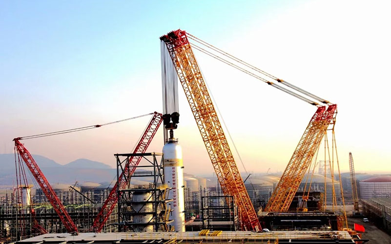 应用配重智能变位、超起一键智能张紧、双钩智能协同、销轴液控自动插拔、双变幅自储油等技术