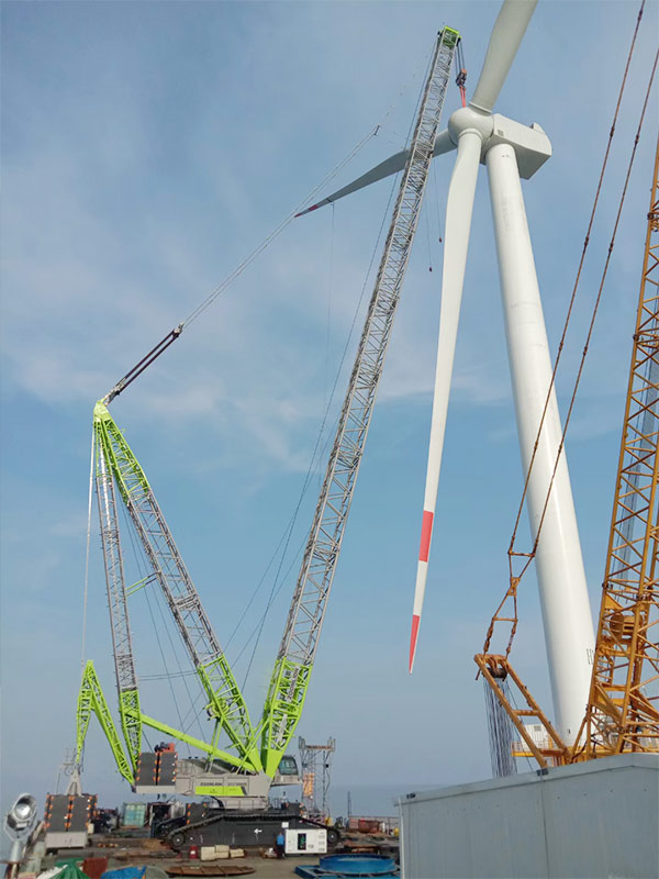 中联1600吨履带吊采用行业**技术(超起配重悬浮)进行海上风机吊装作业