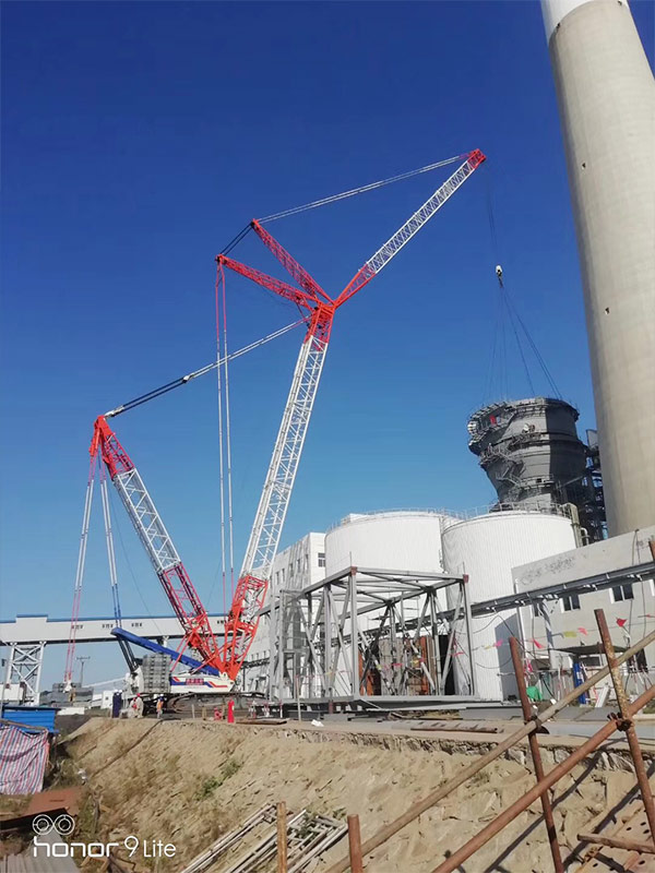 中联650吨履带吊超起塔式工况,大唐煤化工脱硫脱硝改造,设备吊装